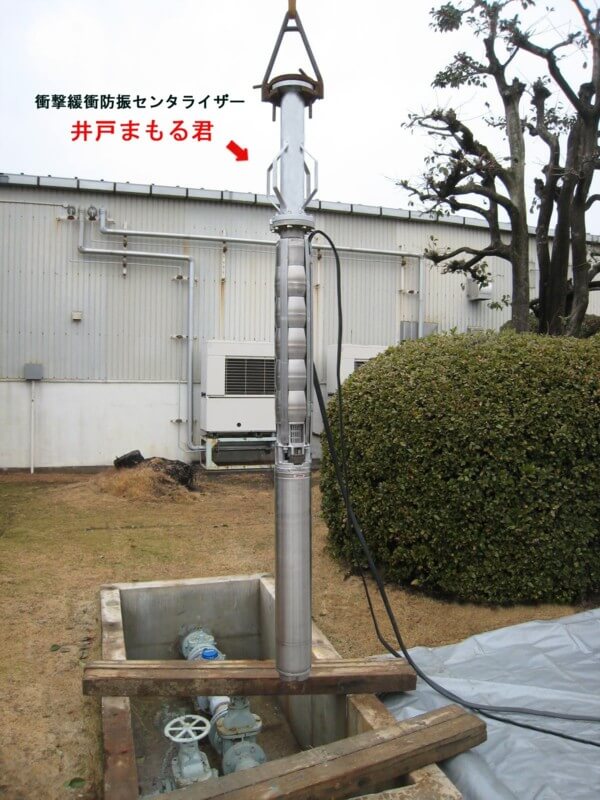 弊社では、水中ポンプの設置、交換工事の際、地震による井戸とポンプの故障を防ぐ井戸まもる君をお客様のご希望により取付け致します。