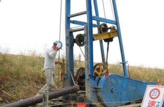 井戸工事は浅くても20~30m、深いものでは100m以上も穴を掘ります。また、掘削中は泥水を張って穴の崩壊防止をしますので作業者が穴の状況を目視で確認することができません。作業は暗闇の中を手さぐりで行うようなものですし、地層も井戸ごとに違います。それゆえ常に最良の施工を行えるノウハウと技術力が必要になります。